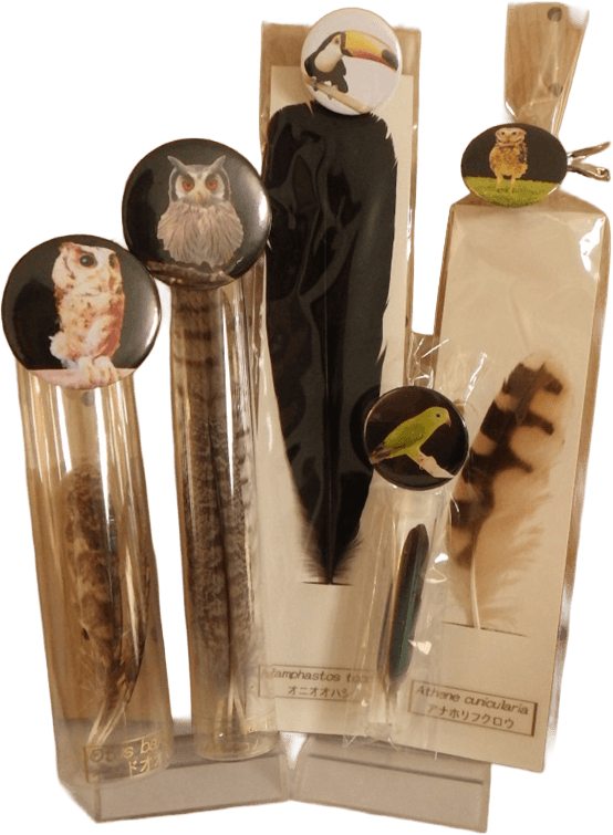 生体から日常的に排出される羽毛などの素材をクリーニングし保存しています。お部屋を彩る美しい色彩の標本です。